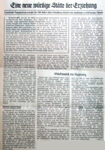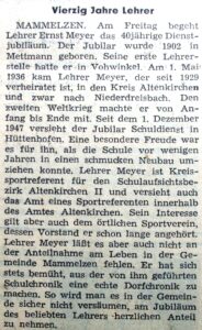 Nach nur zweijähriger Bauzeit konnte die neue Schule bereits 1958 den Betrieb aufnehmen. Ernst Meyer, Hauptlehrer der Schule, wohnte in einem neu erbauten Wohnhaus, das an das Schulgebäude anschloss. Von Ernst Meyer wird berichtet, dass er dem Spruch „keine Feier ohne Meier“ sehr zuträglich gegenüber stand.