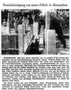 Nach Baufälligkeit der alten Schule beschloss der Gemeinderat im Jahr 1956 den Bau einer neuen Schule. Als neuer Standort wurde eine Wiese in der Siegener Straße nur unweit der Bundesstraße im Ortsteil Hüttenhofen gewählt. Da sich der Ortsteil Hüttenhofen quasi in der Mitte von Mammelzen befindet, hatte kein Schulkind einen unverhältnismäßig langen Schulweg zurückzulegen.