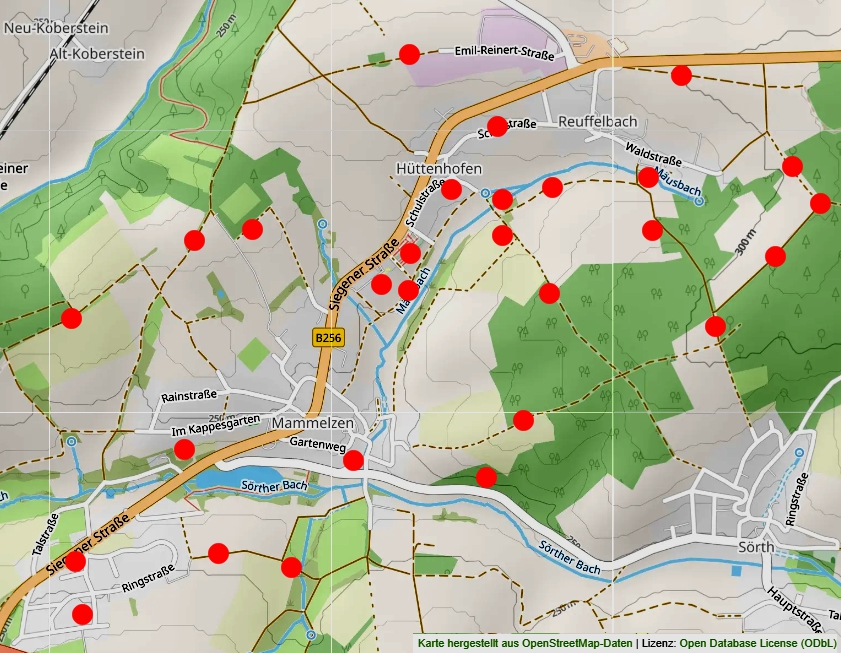 Mehrere Ruhebänke laden unterwegs zur Rast ein. Die Standorte der Ruhebänke der Ortsgemeinde Mammelzen sind auf der nachfolgenden Karte verzeichnet.